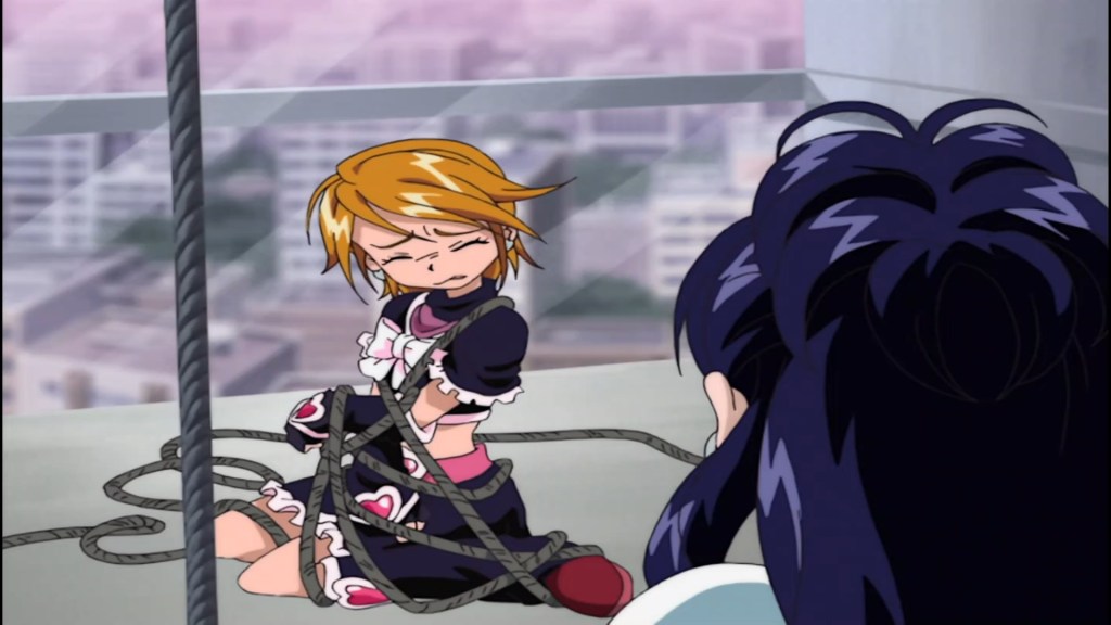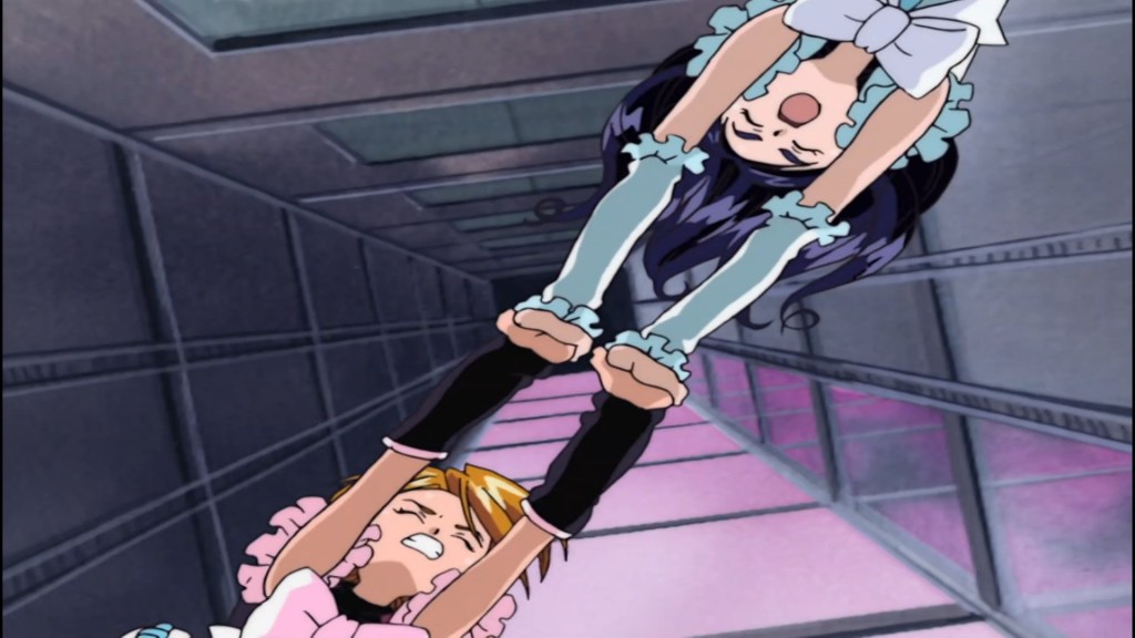 自らの決意でカードをスラッシュしたなぎさとほのかは、光の使者キュアブラックと光の使者キュアホワイトへと変身し、「ふたりはプリキュア」を名乗ります。