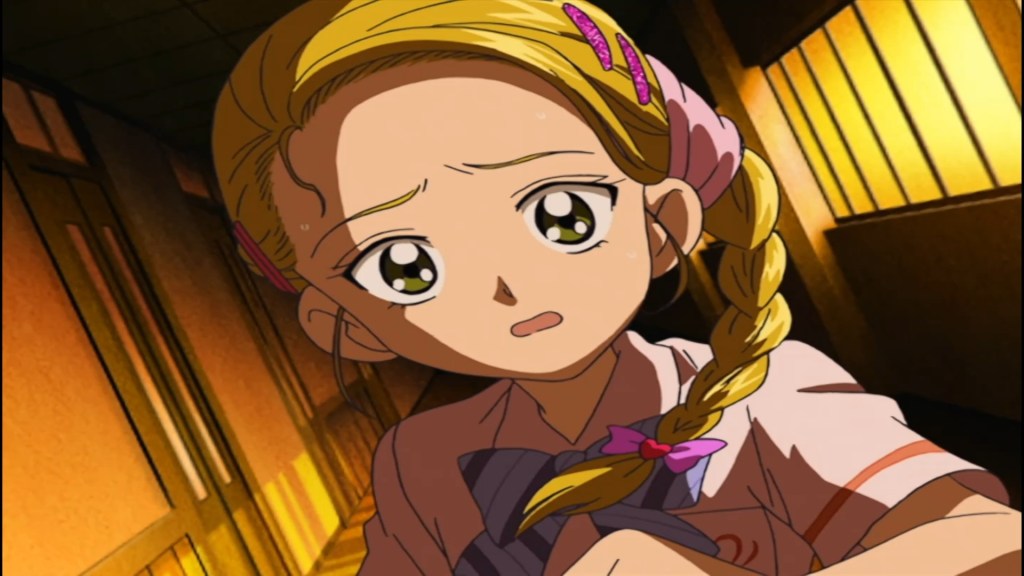戦闘後、ルルンの正体が「未来を紡ぐ光の王女」であり、ポルンに会うために暗くて怖い学校中を探し回っていたことが判明します。ほのかの推測により、学校で起きていた怪奇現象の正体は、引き出しを開けたり鏡の前にいたルルンの行動であったことが分かりました。